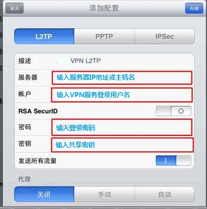 ipad系统L2TP连接设置加速器详细教程同前面PPTP设置方法一样,请参考: