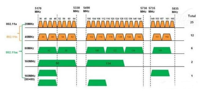 Wi-Fi 2.4GHz和5GHz信道的频宽