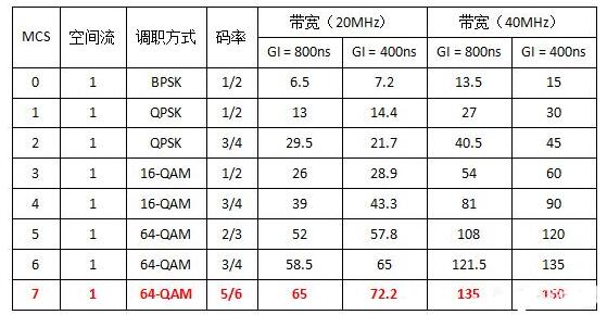 IEEE 802.11n 最高支持64-QAM的调制方式,而IEEE 802.11ac最高支持256-QAM的调制方式。IEEE 802.11n在40MHz频宽下,每条空间流的最大速率有150M,而IEEE 802.11n最高支持4条空间流,所以最高速率为600Mb/s,如果按照实际传输能力砍一半来估算的话,IEEE 802.11n的传输速率大概在300Mb/s的水平。IEEE 802.11ac在40MHz时能达到200Mb/s的理论速率;在160MHz频宽下,每条空间流的最高理论速率能达到866Mb/s。
